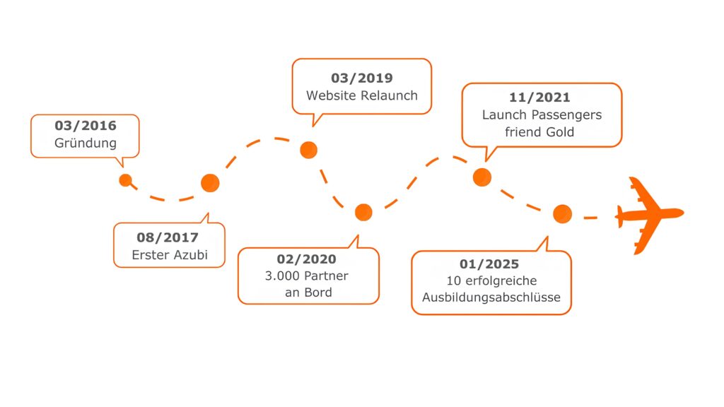 Nach und nach konnten wir immer mehr Reisebüropartner in ganz Deutschland gewinnen, dadurch konnte Passengers friend weiterwachsen. Inzwischen haben wir 25 Mitarbeiter und weit über 3000 Reisebüro-Partner und sind somit Marktführer in Deutschland.